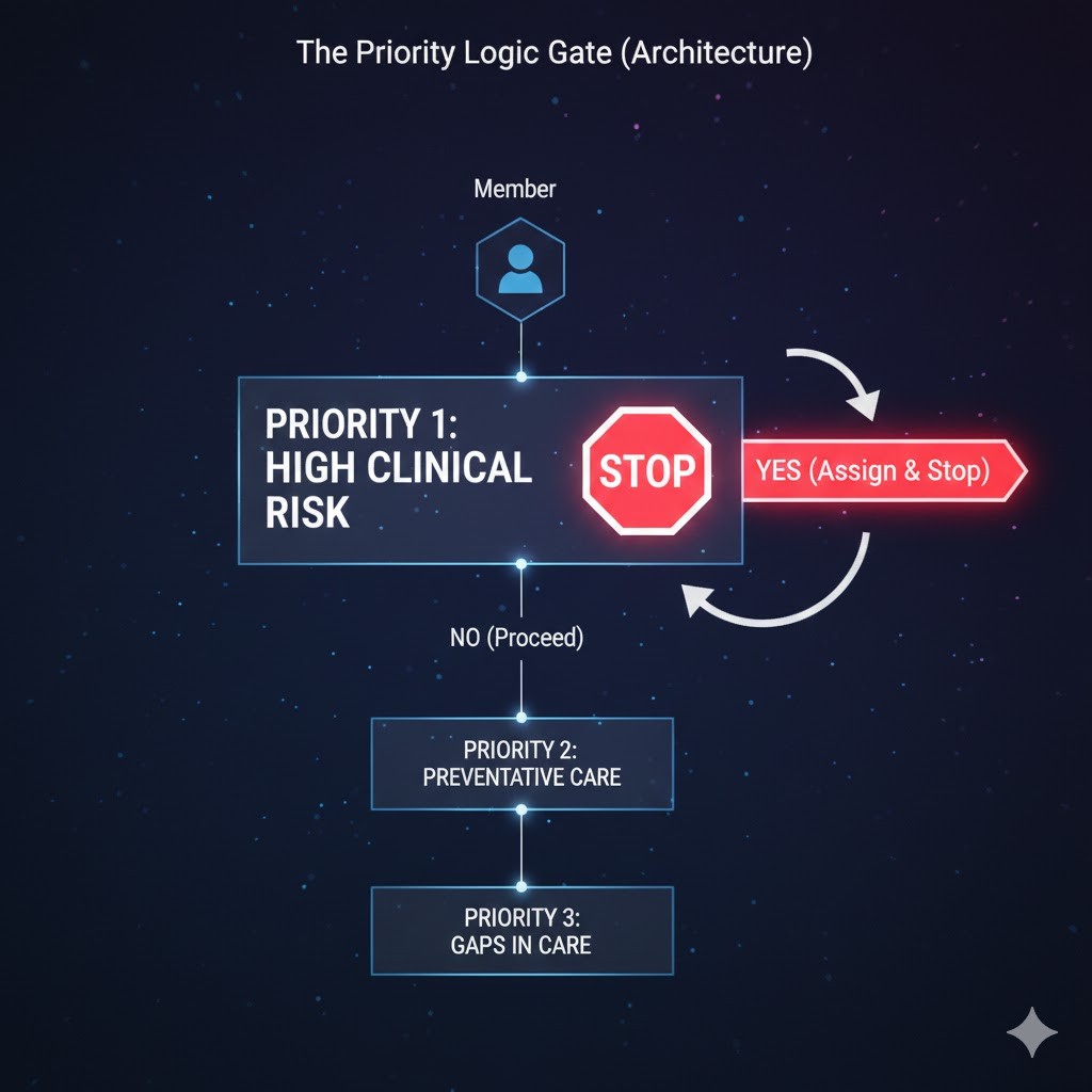 I led a comprehensive redesign of the workflow taxonomy, business rules, and data pipelines. The solution introduced mutually exclusive, priority-ordered workflow groups aligned to clinical risk, deterministic ETL processing with zero race conditions, and a versioned workflow ID framework. Dashboard UX was redesigned with tabbed priority views and “Why am I here?” explanations, restoring transparency for care managers and leadership.