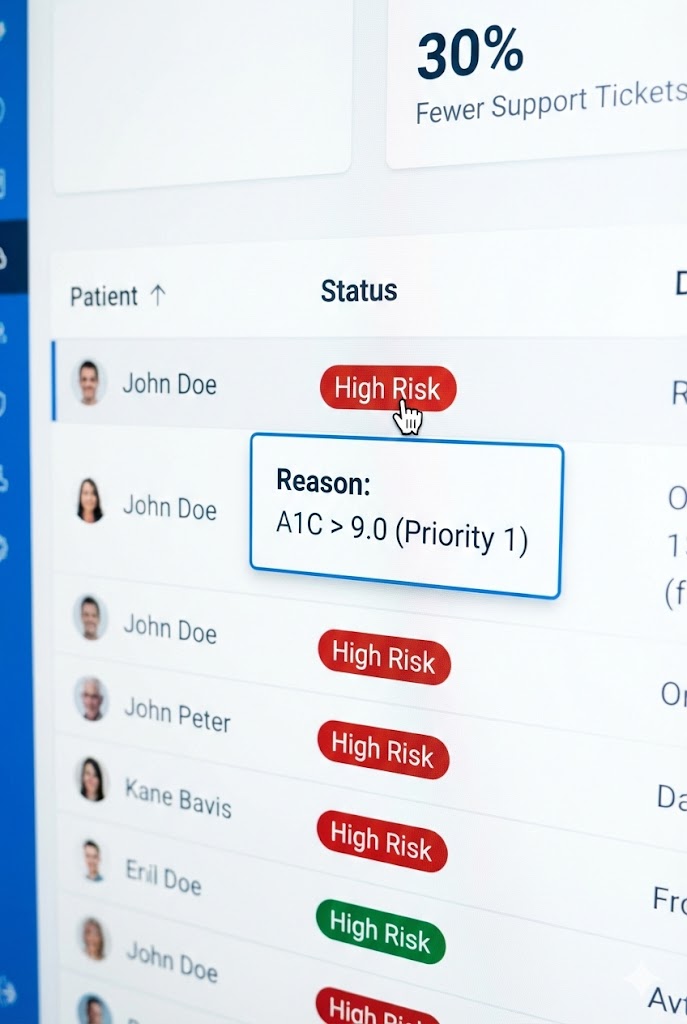 This transformation delivered measurable and sustained impact: 15% more high-risk members identified, 100% deterministic workflow logic, and 30% fewer support tickets due to improved dashboard clarity. The platform now provides predictable, explainable member prioritization, supports regulatory and leadership reporting, and establishes a scalable workflow foundation aligned to the client’s 2025 operational model and future expansion needs.