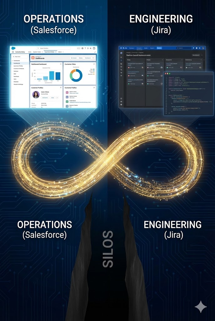 Engineering strongly resisted adopting Salesforce for ticket updates and viewed a second tool as overhead that would slow delivery velocity. Instead of forcing behavior change, the strategic pivot was building a bi-directional integration that respected each team’s preferred workspace—Jira for Engineering and Salesforce for Operations—while keeping updates synchronized automatically in real time. This eliminated resistance, ensured adoption across both teams, and maintained the data integrity required for SLA monitoring and reporting.